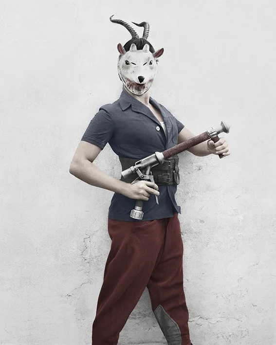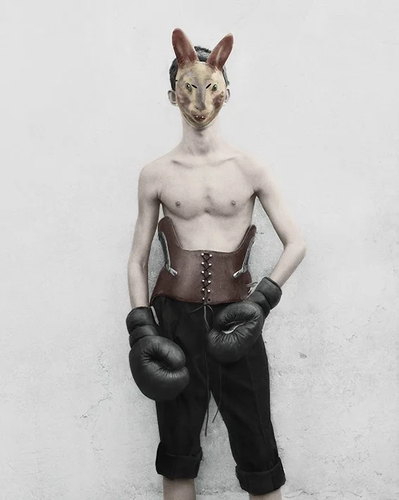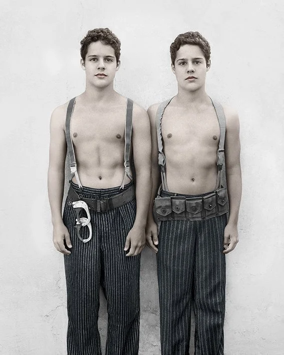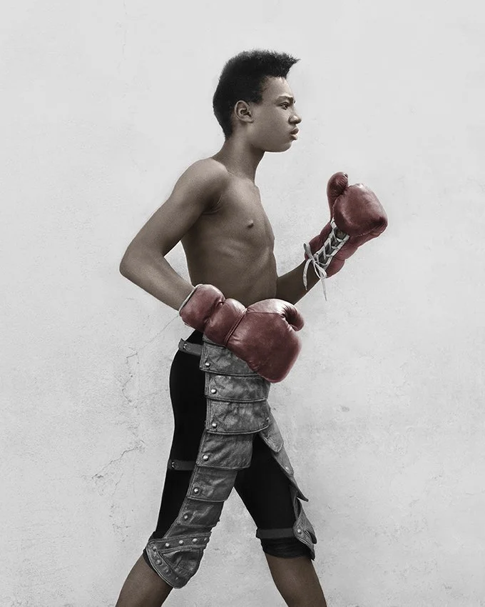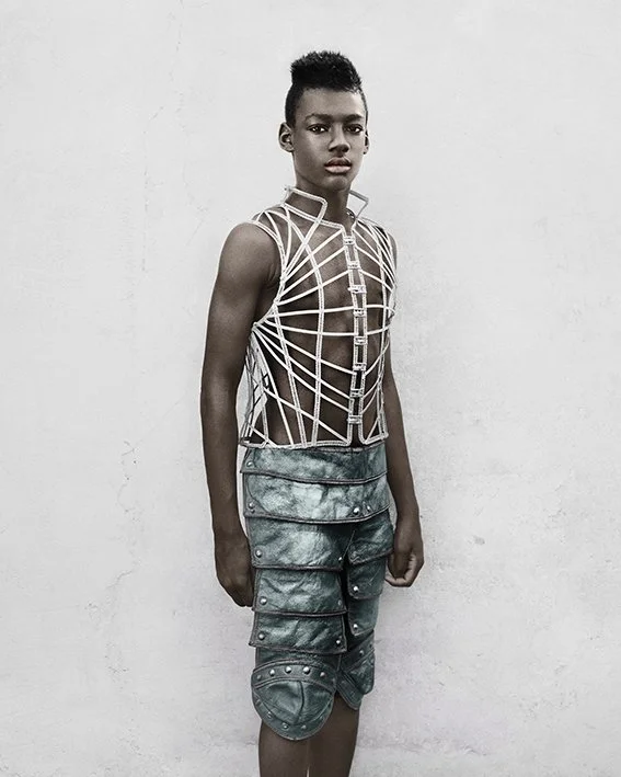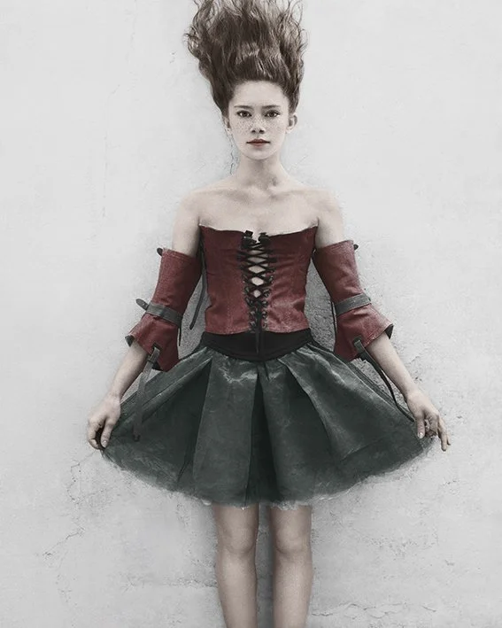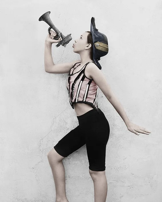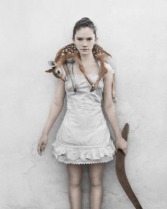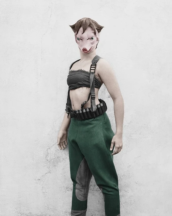 In her collection Bulletproof, Speers photographs the Birthday Party children 6 years later. Each and every one, in their manner and their costume, is invincible. Each and every one holds the reins, dictates the rules., Speers has already photographed this band of heroes and heroines, has already had them play roles, against the same grey wall when they were children. Since then, things have changed. Their bodies have taken shape, become bigger, stronger. There faces too, they have transformed and refined. Speers leads her characters toward imaginary realms, playgrounds and places where these characters will always remain, no matter what happens, armed and victorious..